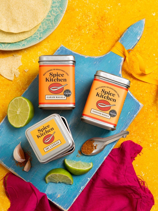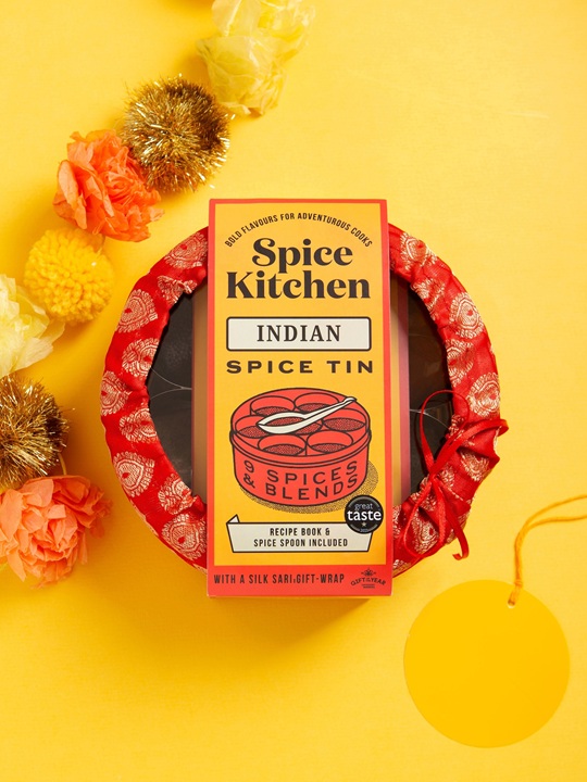 A family-run business with heart and heritage, Spice Kitchen was founded by mother and son team Shashi and Sanjay Aggarwal. What began with a single Indian Spice Tin crafted at their kitchen table on Christmas Day in 2012, Spice Kitchen has blossomed into an award-winning range of spice tins, gifts and globally inspired spice blends. Each one made with care, tradition, and a love for f lavour. Our beautiful tins and bold spices are loved by our customers and Great Taste Award judges alike, receiving 9 one and two-star awards in the 2023 Great Taste Awards. In addition, our Indian Spice Tin with a Silk Sari Wrap has also won Gift of the Year twice, most recently in 2022.