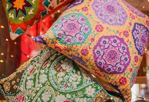 We have a variety of items for the home, from 3 meter hand stitched Tree of Life voiles. We have a selection of king size throws. Brightly coloured cushions and matching rugs. Table cloths and more in between. We also have king size Jaipur quilts, 100% cotton including the filling. A small example of our products are shown below: